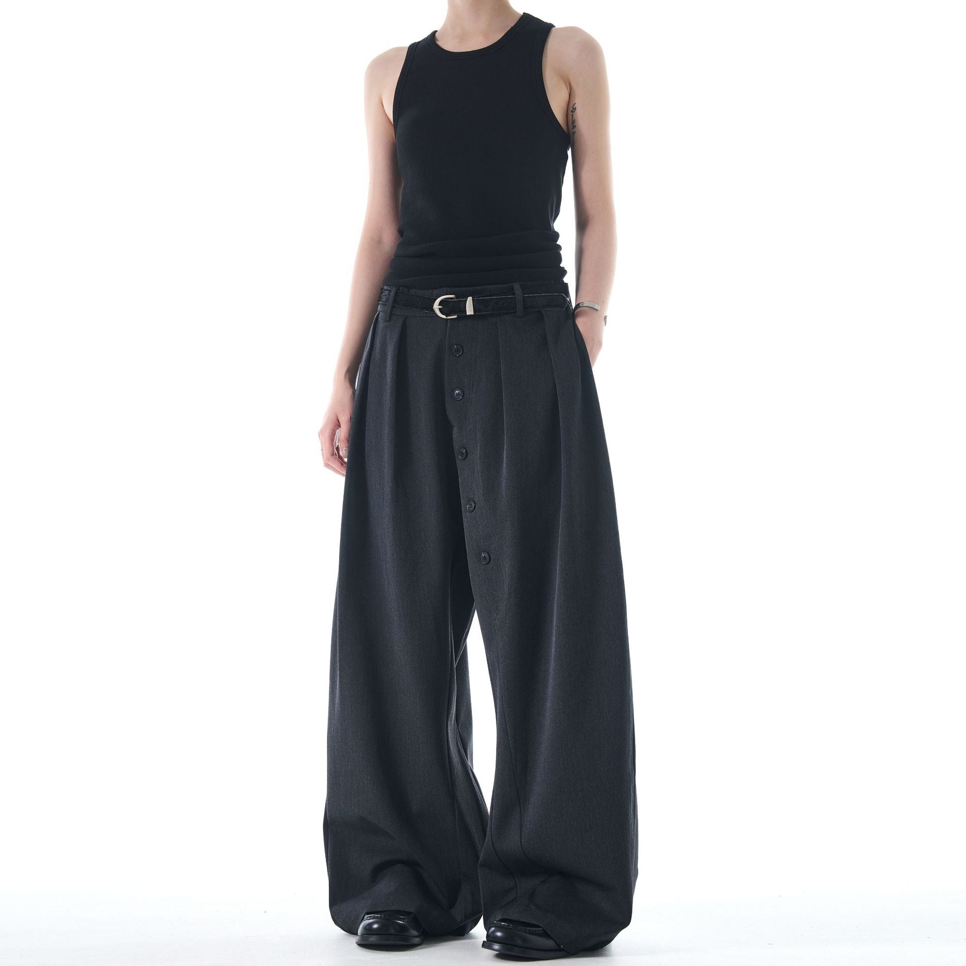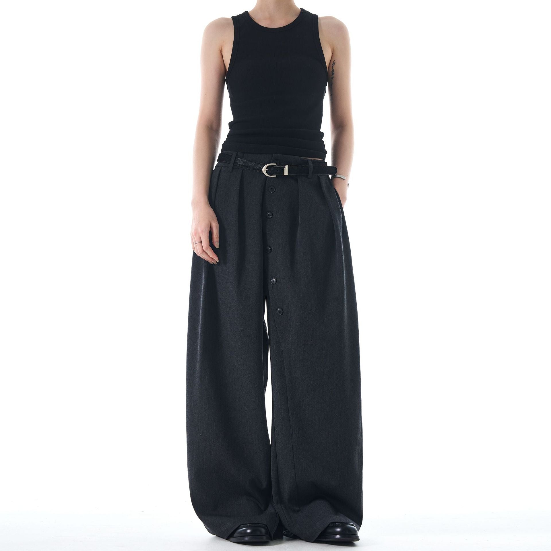 Button casual men's straight leg wide leg lazy dragging curved knife pants