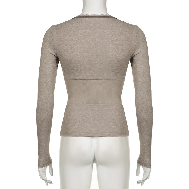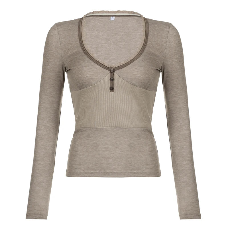 Darlingaga Y2K Vintage Patched Slim Autumn T-shirts Female Buttons Harajuku Top Tee Long Sleeve Korean Shirt 2000s Chic Outfits