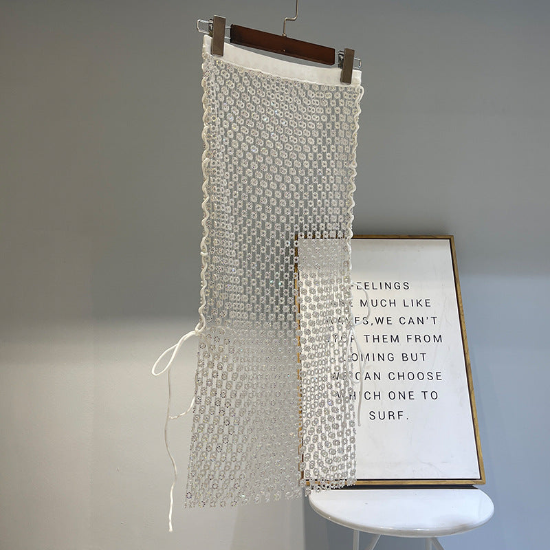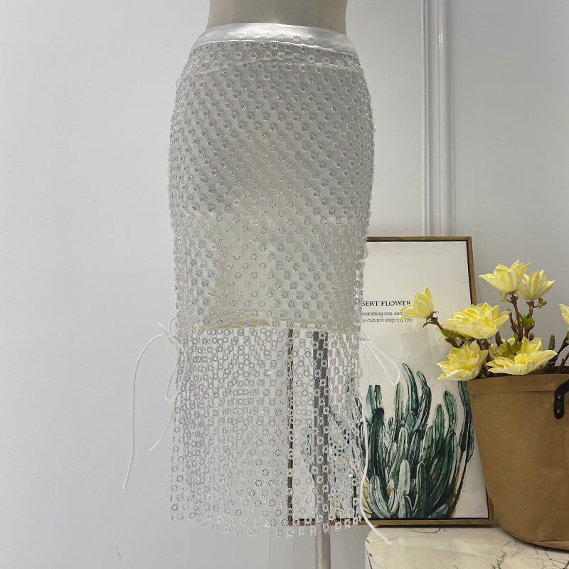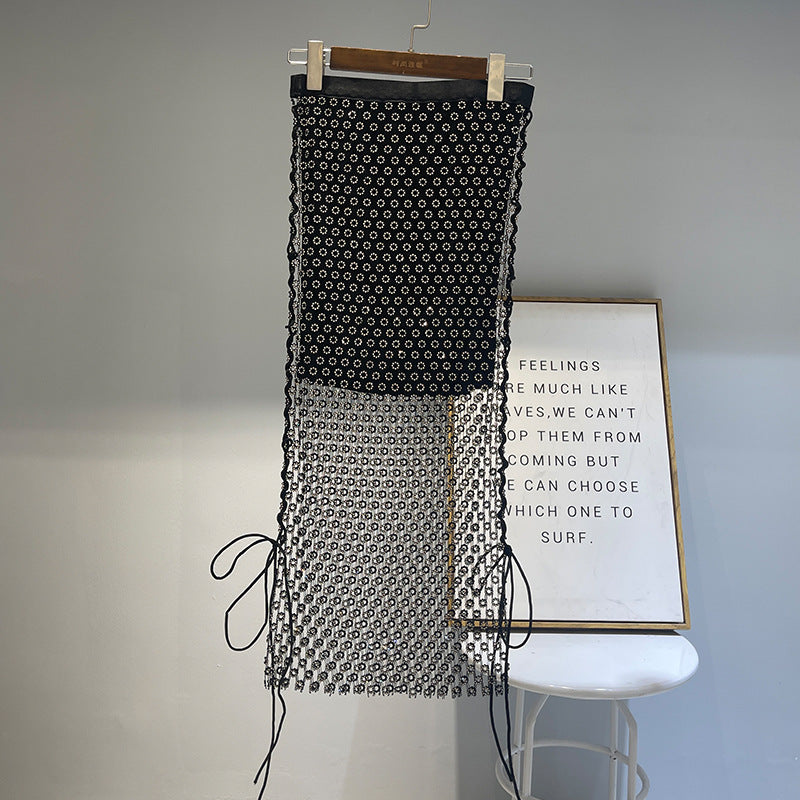 Diamond studded circular flower half skirt, European and American loose hollow waist skirt, internet famous beach vacation suit