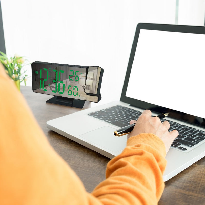 Digital Alarm Clock with Mirror Display, Projection, Temperature & Humidity – USB Powered