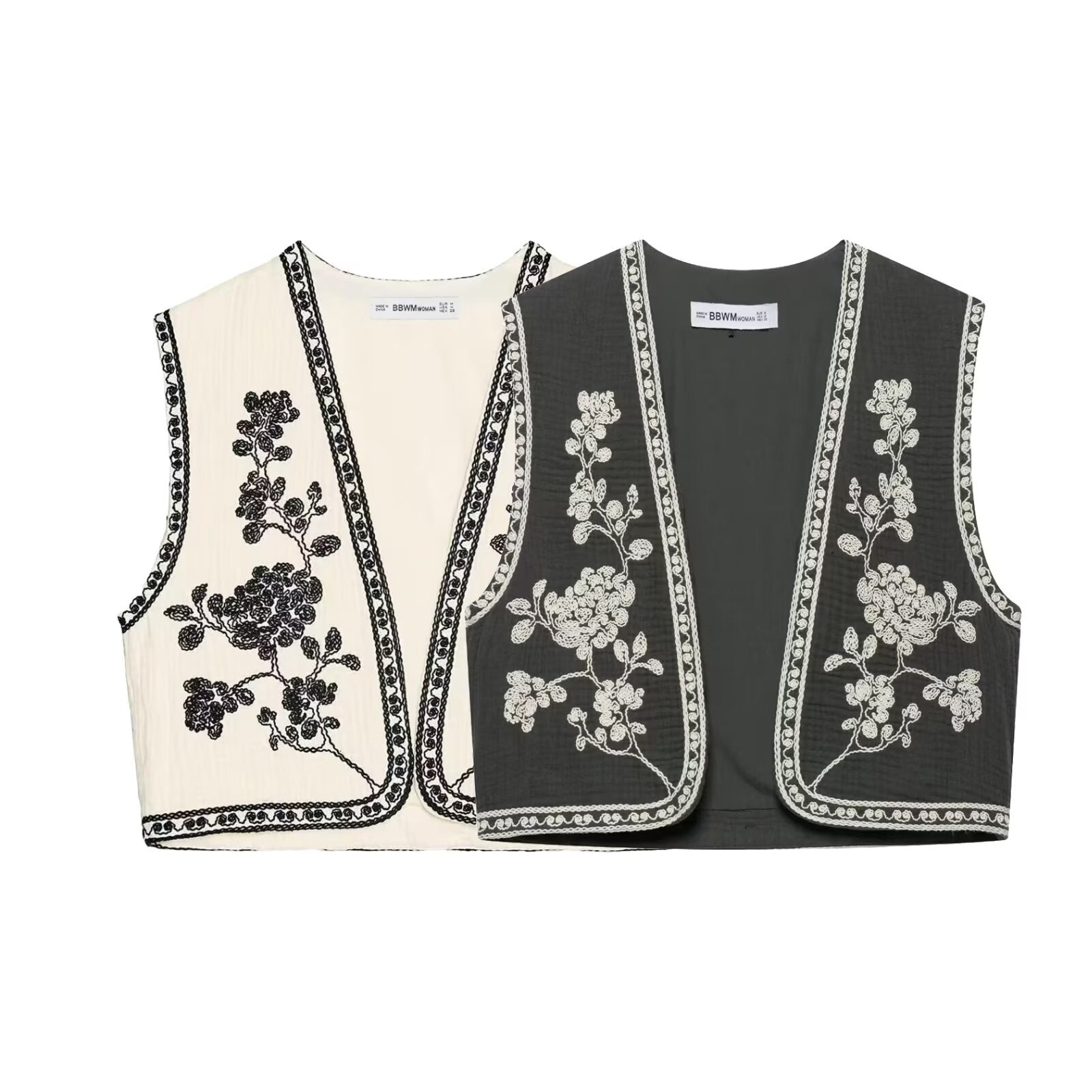 Embroidered buttonless vest jacket for women