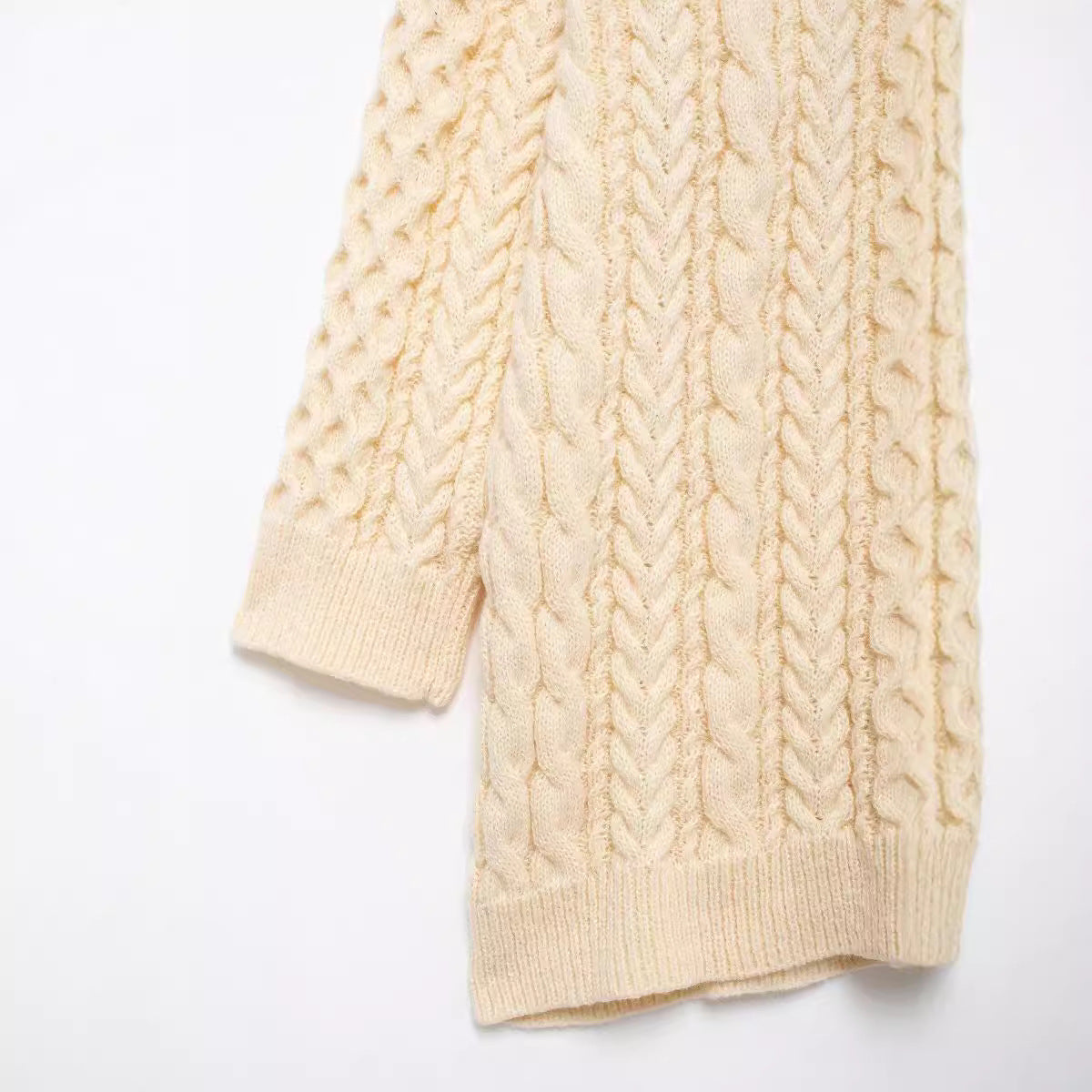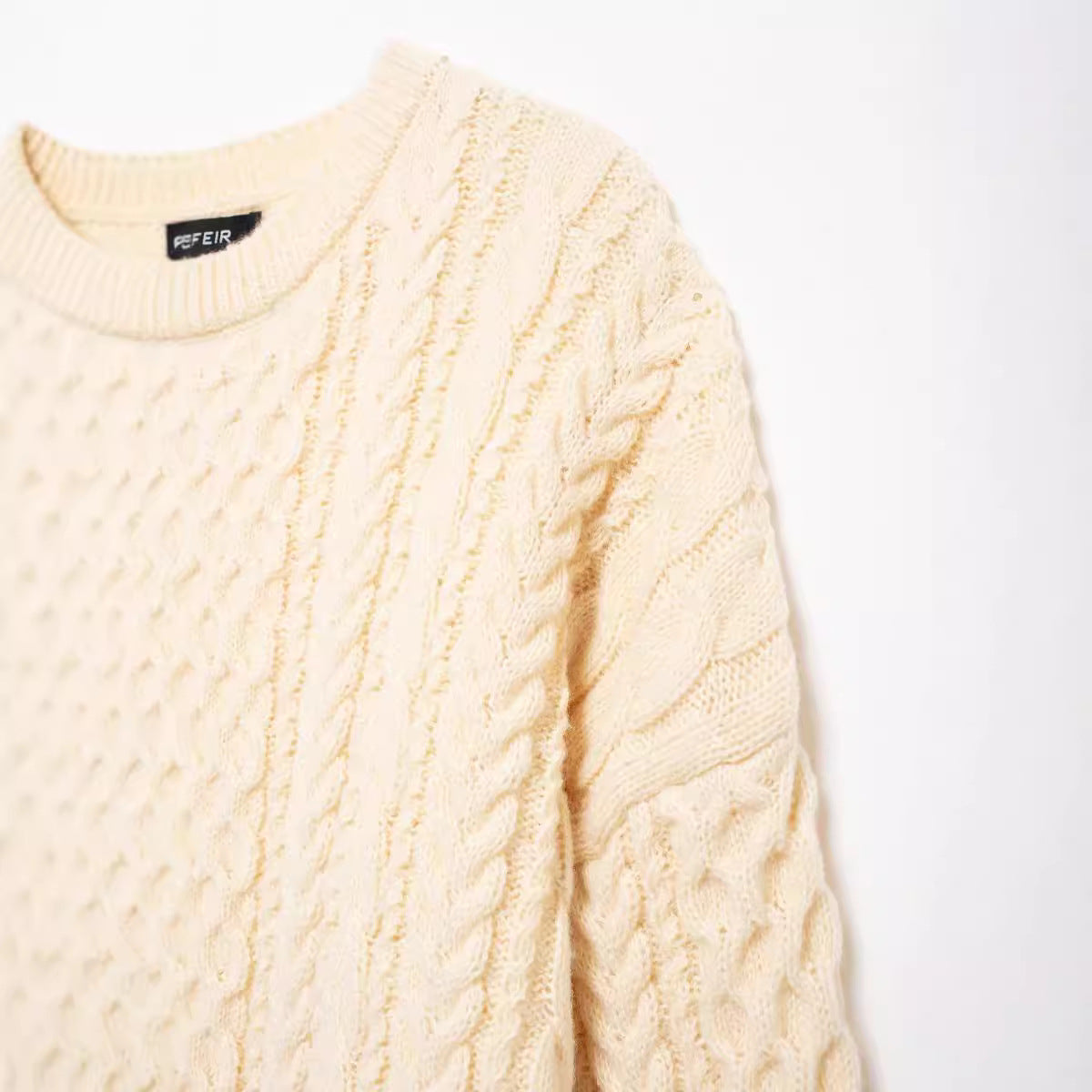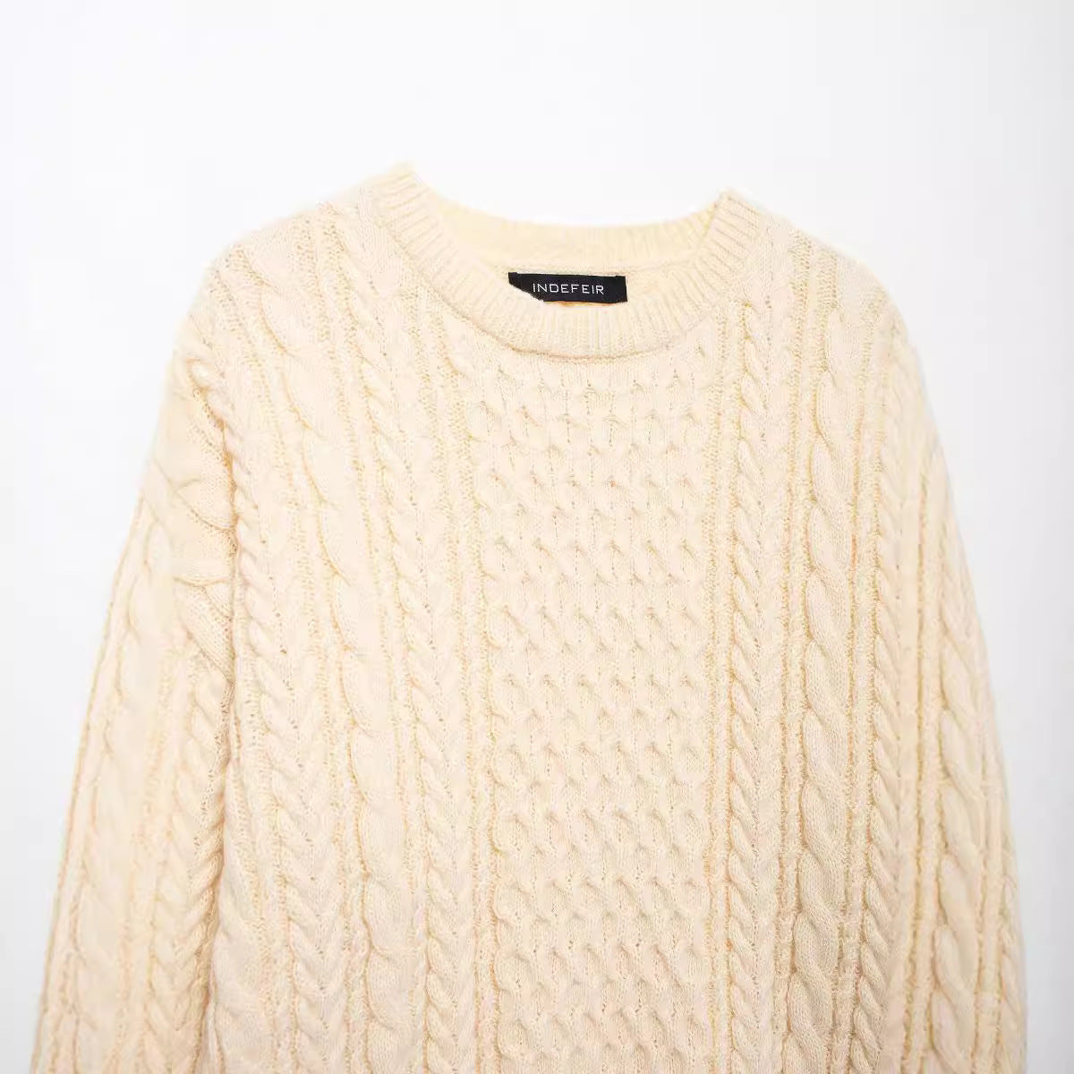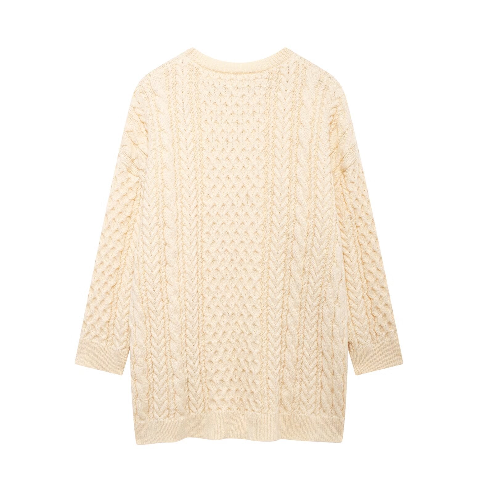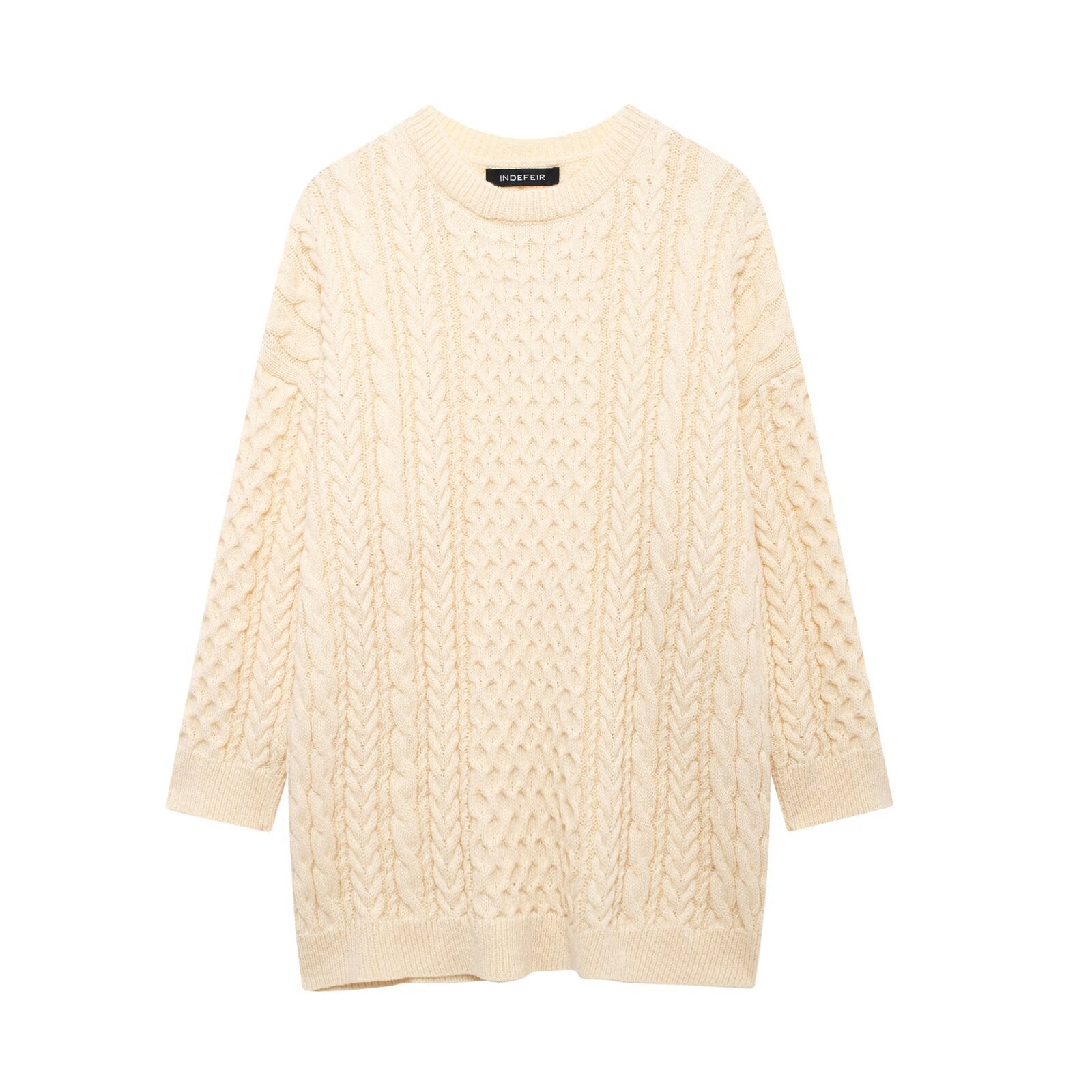 European and American autumn new round neck long sleeved eight strand braided loose knit sweater for women