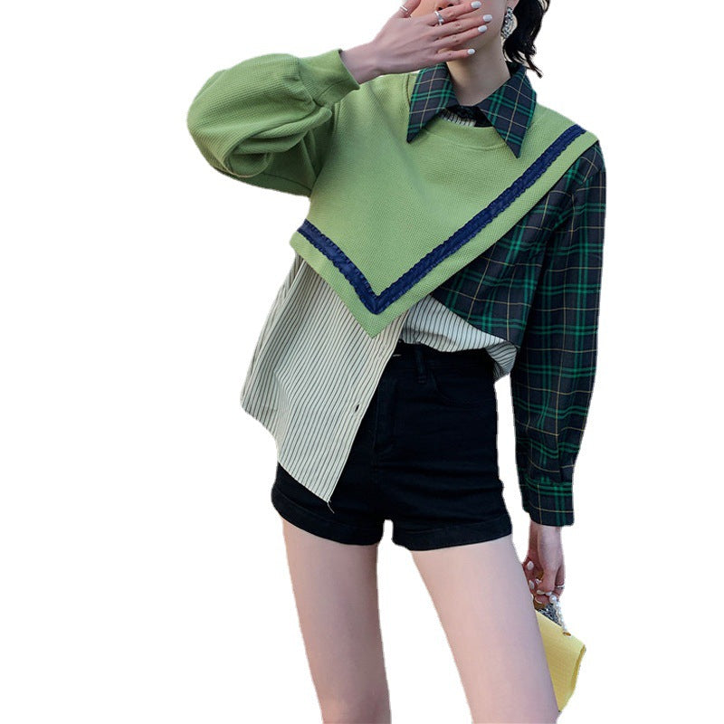 Fake Two Top Retro Hoodie Women's Asymmetric Shirt