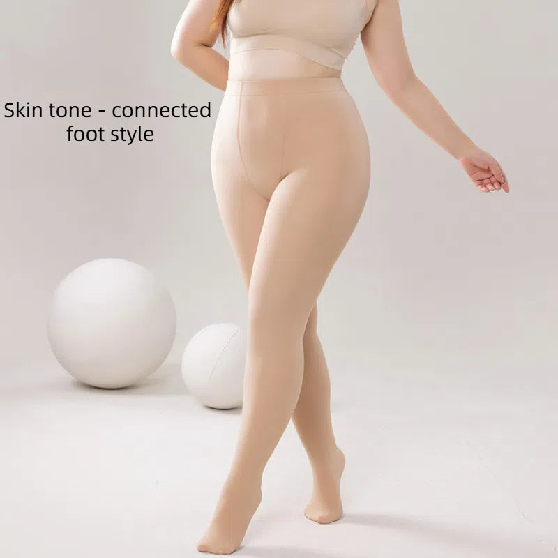 Large size water gloss single-layer one-piece socks with bare legs female nude sensation flesh color flat waist pantyhose