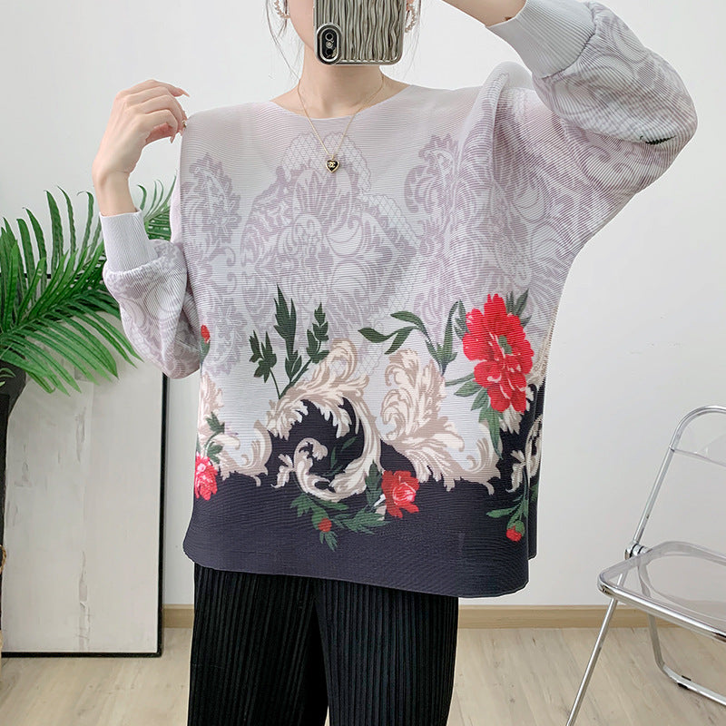 Anitrendy Pleated Printed Loose Fit Top – Women’s Floral Batwing Sleeve Blouse, Plus Size, Belly Covering, Relaxed Commuting Style