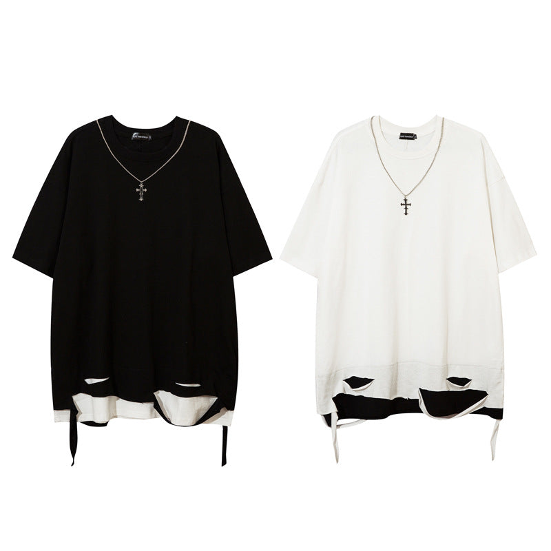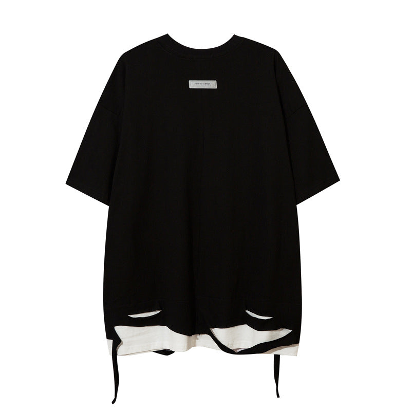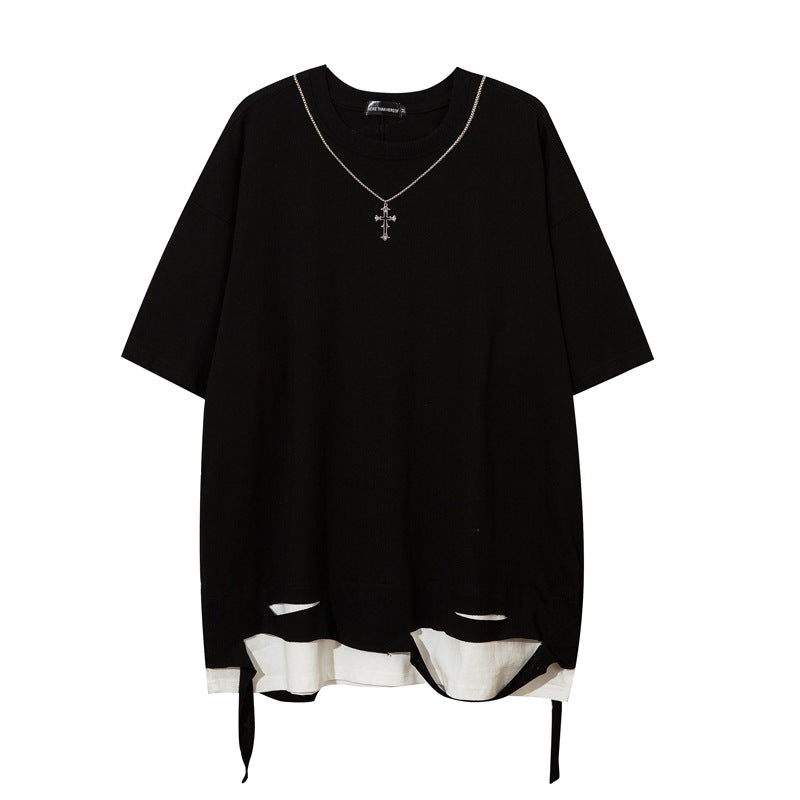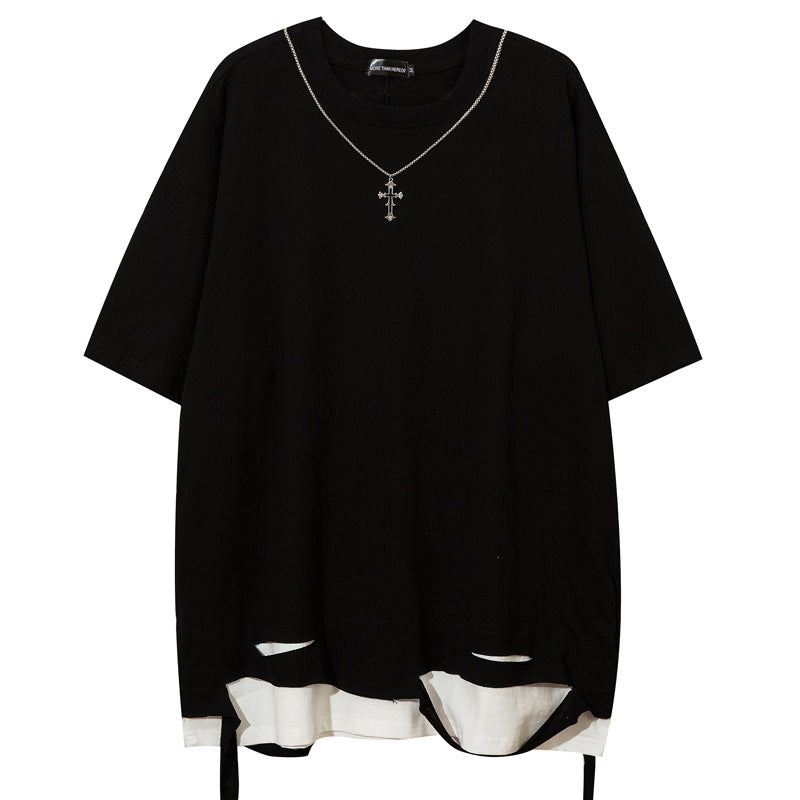 Men'sLoose Street Dance Fake Two-Piece Short Sleeve T-Shirt