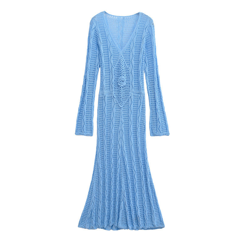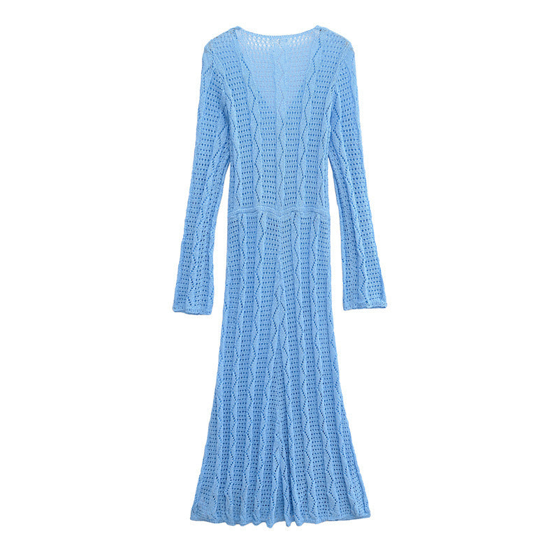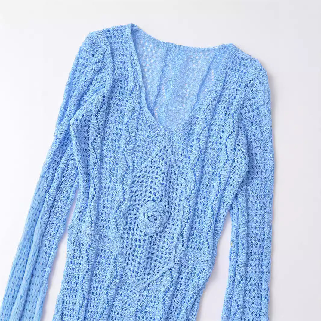 New women's clothing European and American fashion elegant temperament long sleeved V-neck knitted jumpsuit