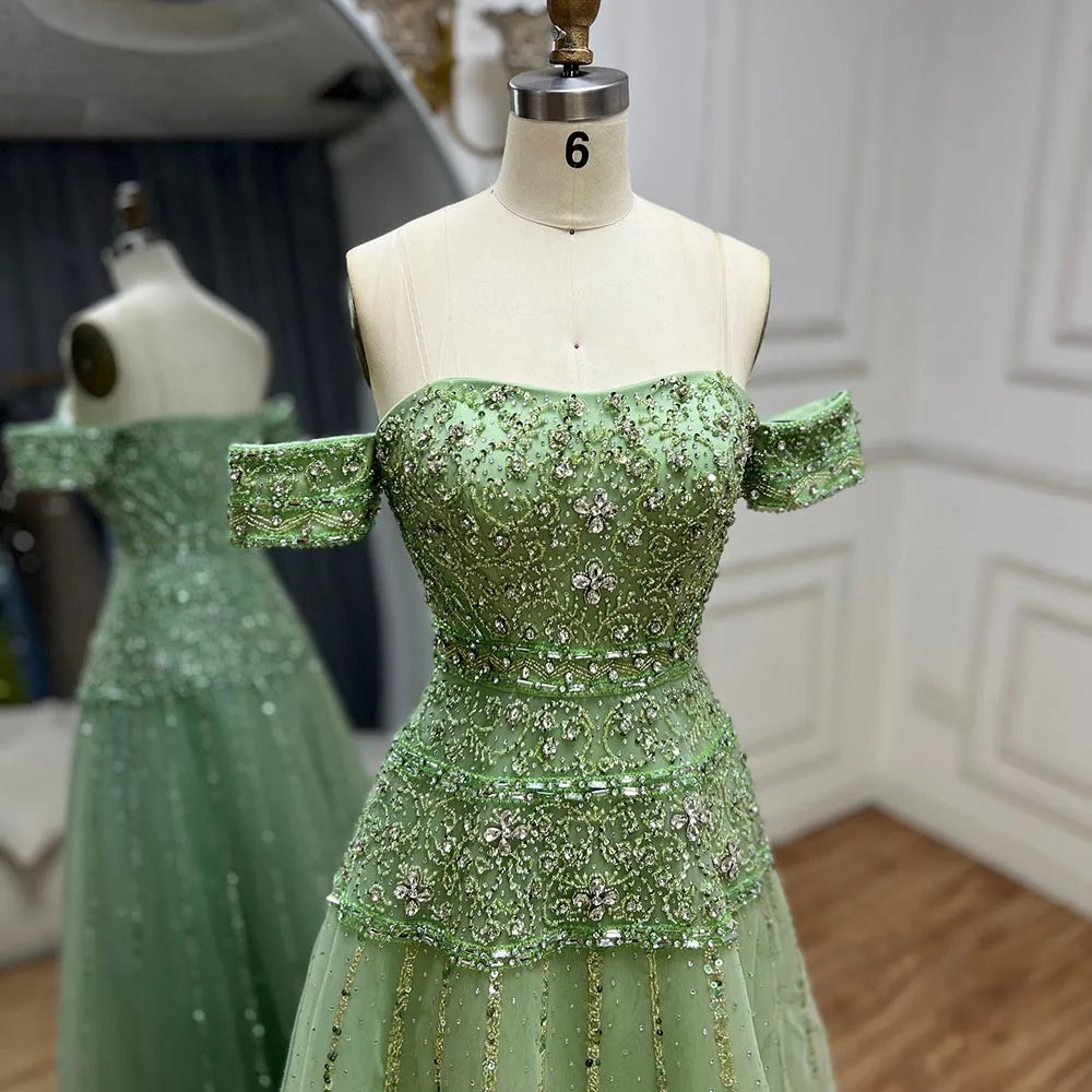 Serene Hill 2025 Off The Shoulder A-Line Caramel Beaded Evening Dress for Occasion Saudi LA72709 Customized