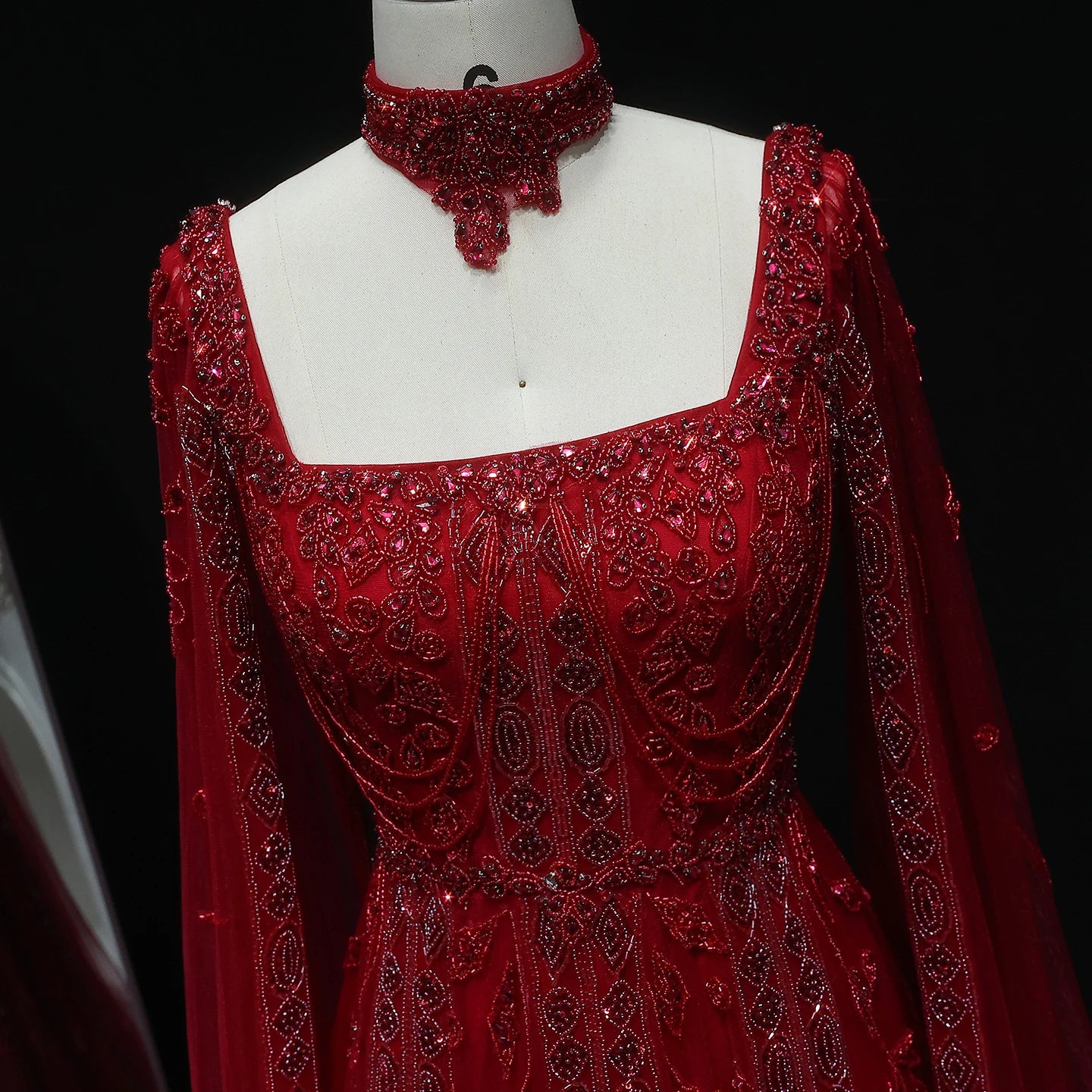 Sharon Said Luxury Dubai Nude Arabic Evening Dress with Cape Sleeves Chocker Wine Red Women Wedding Party Gowns SS543 Customized