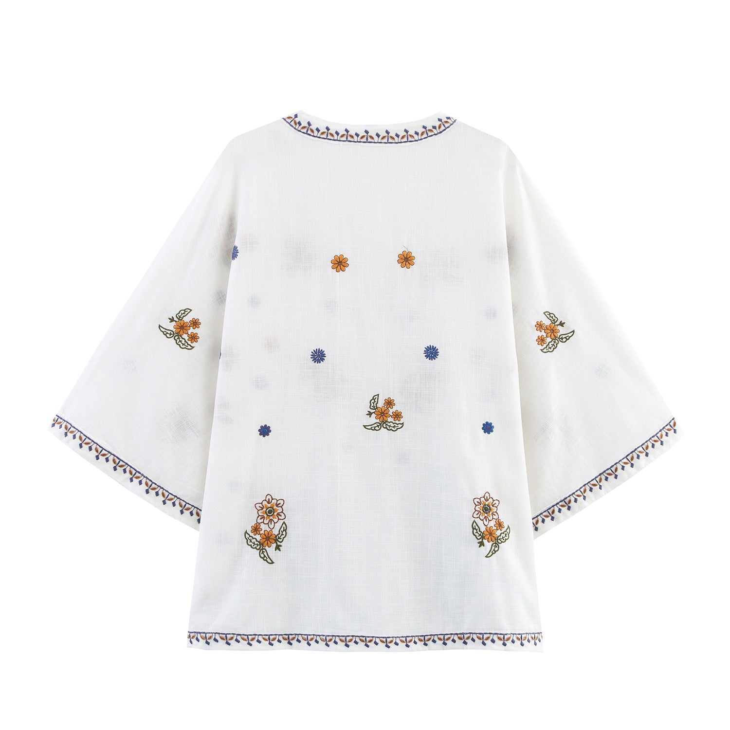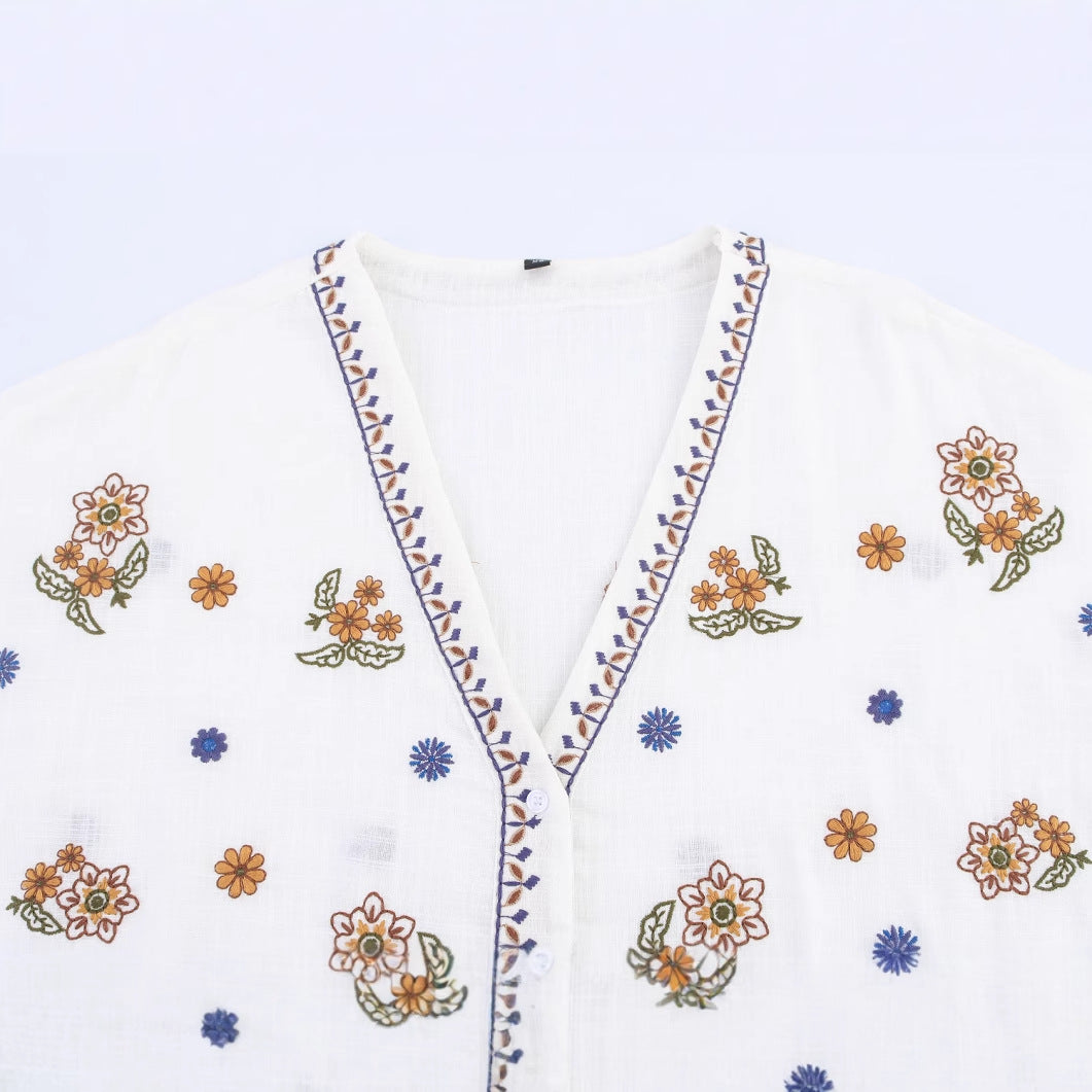 Women's Fashion Elegant V-neck Embroidered Long-sleeved Shirt